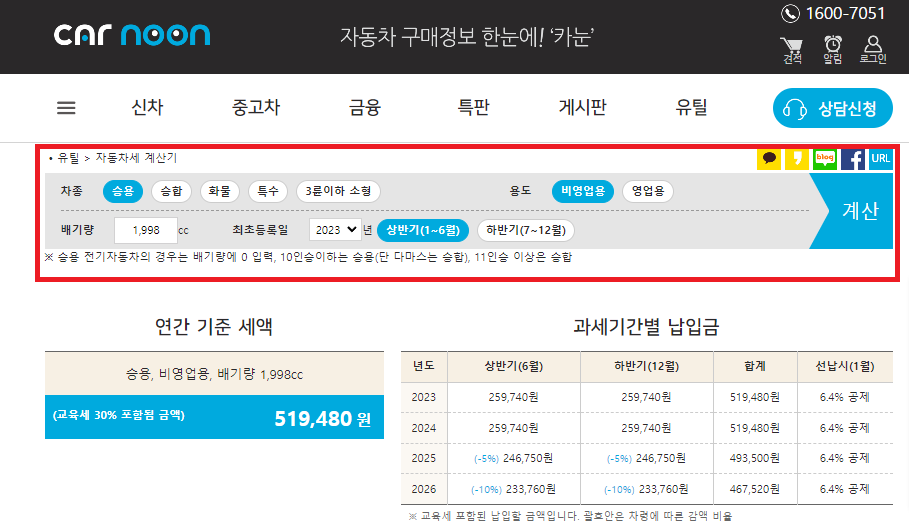 2. 카눈(car noon) 자동차세 계산기