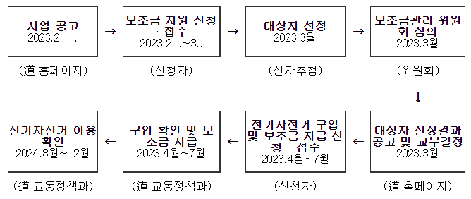 □ 지원금액 : 전기자전거 구매 시 구입금액의 50% 이하, 최대 30만 원까지 보조금 지원 (1가구당 1대 한도)