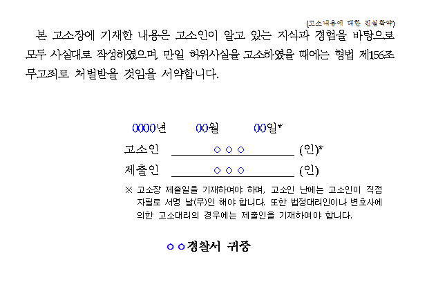 고소장 작성 시 주의사항