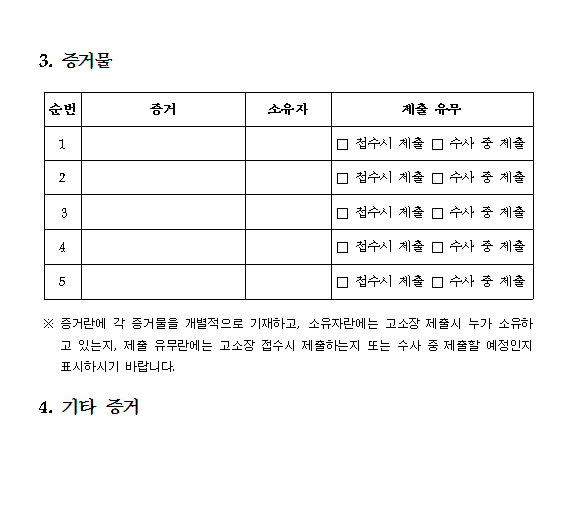 - 증거물 : 증거물이 있는 경우 기재.